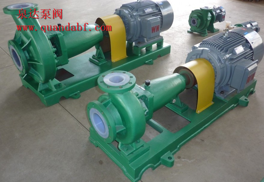 lHF型襯氟塑料離心泵是泉達公司技術人員按IH不銹鋼離心泵圖樣泵體、泵蓋接觸液體的部分采用氟塑料增強合金襯里壓制,葉輪、軸套、葉輪螺母等過流部件均采用氟塑料增強合金壓制,其性能、連接安裝尺寸與lH型泵保持不變,是一種耐腐性能強的離心泵。