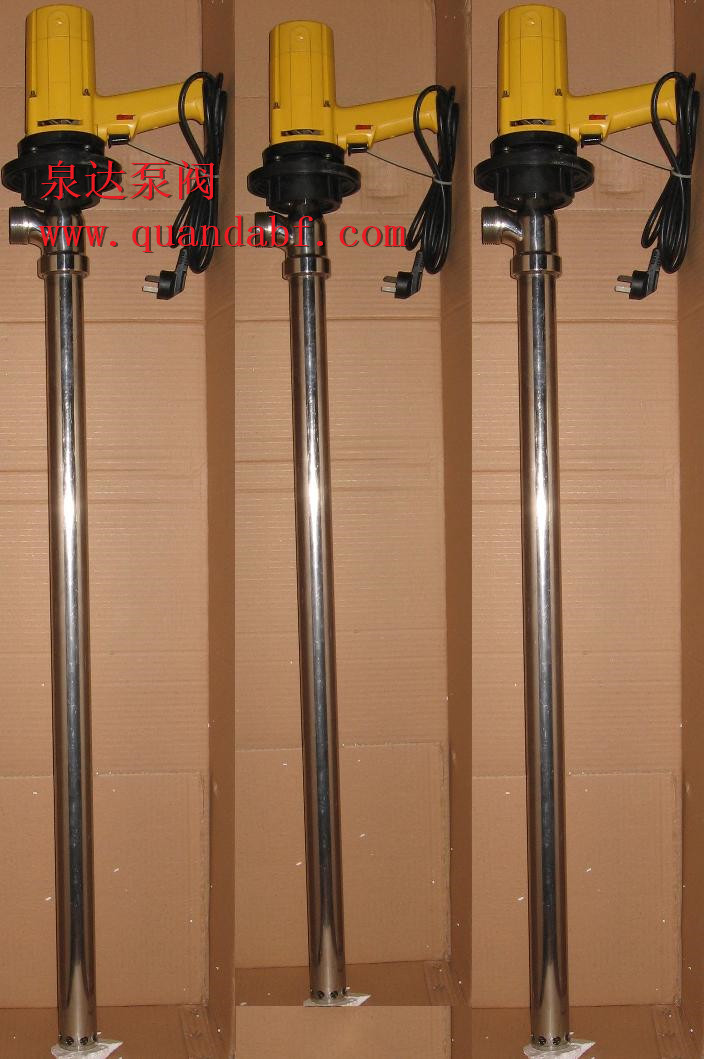 SB型電動(dòng)油桶泵是泉達(dá)公司引進(jìn)西德優(yōu)質(zhì)樣機(jī)開發(fā)研制而成,各項(xiàng)技術(shù)指標(biāo)均能達(dá)到樣機(jī)水平,并在樣機(jī)基礎(chǔ)上開發(fā)了不同的使用場(chǎng)合不同抽吸液體的系列派生產(chǎn)品,該系列抽液泵為輕便型管式軸流泵,具有效率高,使用、維修方便等特點(diǎn)。SB型油泵廣泛用于化工、石油化工、精細(xì)化工、染料化工、環(huán)保、水處理、醫(yī)藥、食品等部門抽吸不同液體。如在易燃易爆場(chǎng)合使用,可選用我公司生產(chǎn)的防爆型電動(dòng)抽液泵。(SB-3型、SB-4型)使用油泵時(shí)應(yīng)按CB38361-2《爆炸環(huán)境用防爆電氣設(shè)備》有關(guān)規(guī)定并正確使用防爆插頭插座。